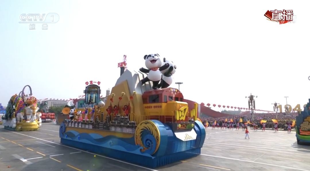 此外,除了大熊猫,在四川彩车中还有不少的成都元素,中欧班列—蓉欧快铁就是其中之一。吕骑铧介绍,通过设计中欧班列—蓉欧快铁、新能源页岩气开发、核电技术华龙一号、电子信息墙等现代科技元素,主要是想表达党的十八大以来,具有四川特色的支柱产业和现代高科技发展,反映四川“一带一路”建设新成果和四川经济发展、科技进步的辉煌成就。