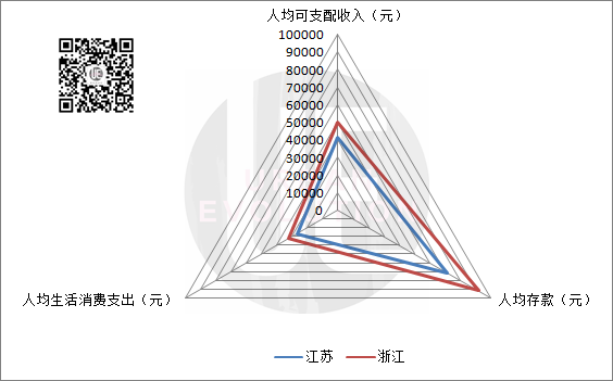 这也意味着,从居民财力和消费力来看,浙江都对江苏形成“碾压”。