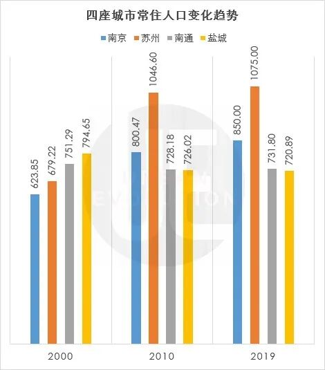 到第六次全国人口普查,2010年,苏州一举成为江苏首个人口超千万城市,南京人口也增长176.62万人至800.47万人;相比之下,盐城常住人口减少近69万人,为726.02万。同样,南通人口下降超23万人至728.28万人。