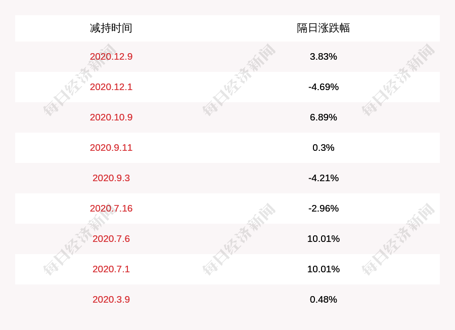 1. 星徽股份上次发布减持公告是2020年12月09日,第二个交易日上涨3.83%,星徽股份近一年共发布10次减持类公告。更多关键信息,请搜索“道达号”。