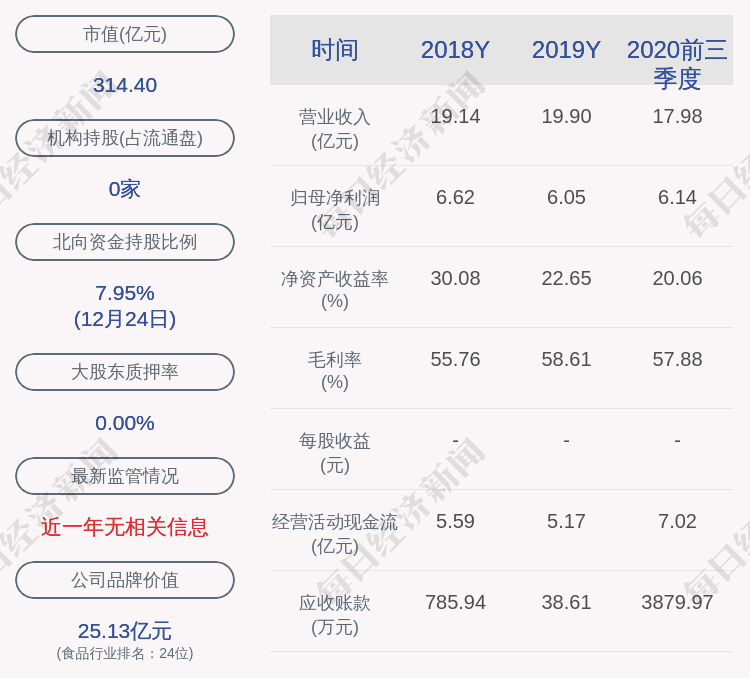 2020年半年报显示,涪陵榨菜的主营业务为食品加工,占营收比例为:99.9%。