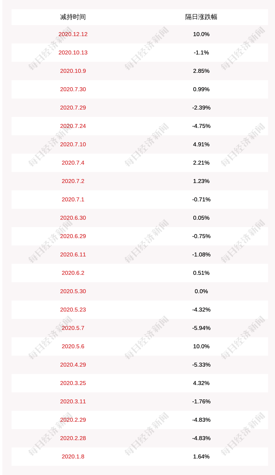 1. 上海洗霸上次发布减持公告是2020年12月12日,第二个交易日上涨10.0%,上海洗霸近一年共发布25次减持类公告。更多关键信息,请搜索“道达号”。