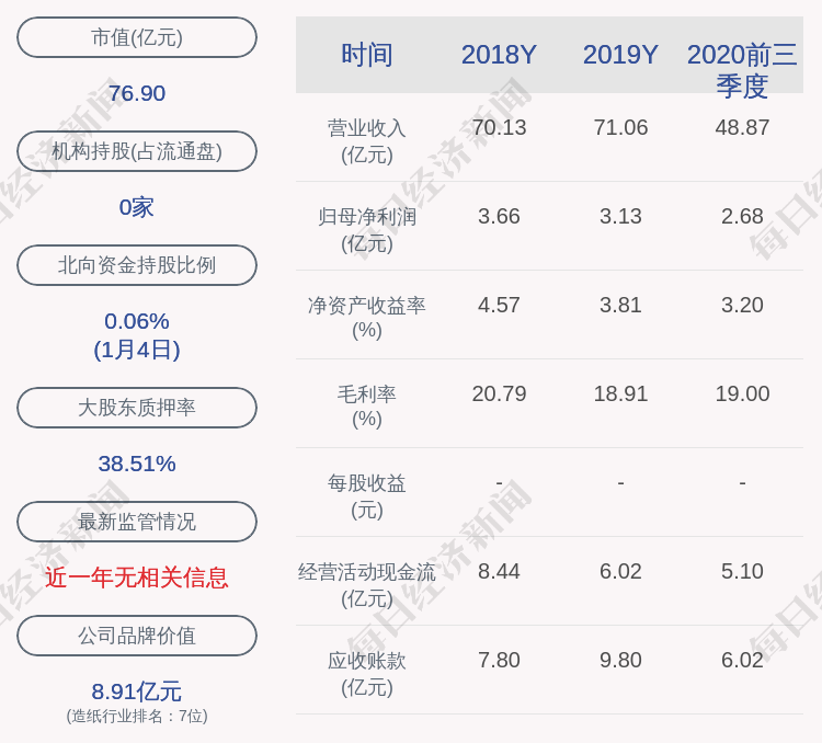 2020年半年报显示,岳阳林纸的主营业务为造纸业、市政园林、林业、化工业、房地产,占营收比例分别为:72.13%、13.21%、4.12%、3.53%、3.07%。