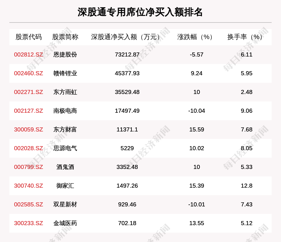 在龙虎榜中,涉及深股通专用席位的个股有14只,恩捷股份的深股通专用席位净买入额最大,净买入7.32亿元。