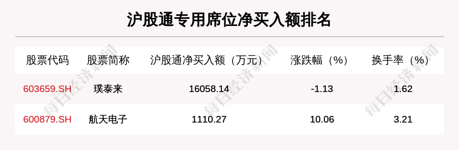 在龙虎榜中,涉及沪股通专用席位的个股有2只,璞泰来的沪股通专用席位净买入额最大,净买入1.61亿元。