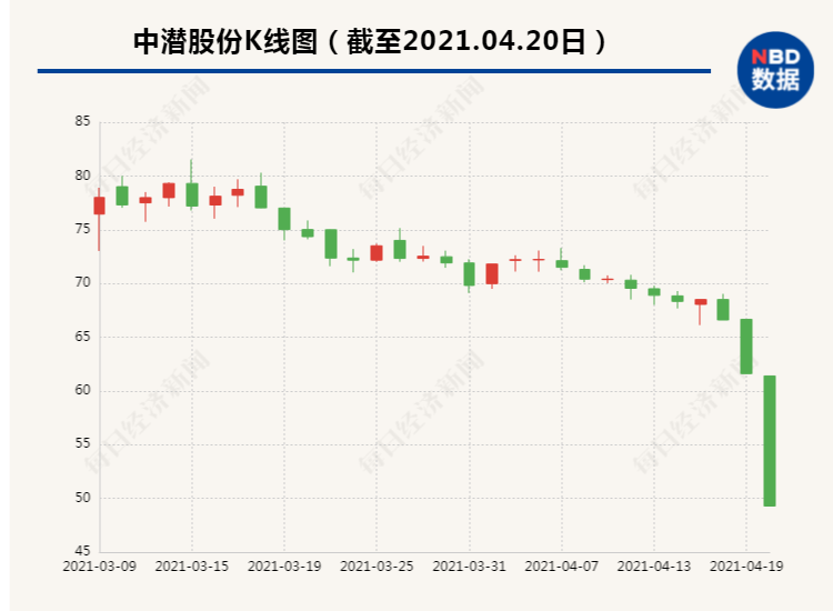 值得注意的是,2021年4月19日,中潜股份发生了1笔大宗交易,总成交68万股,成交金额3980.04万元,成交价58.53元。