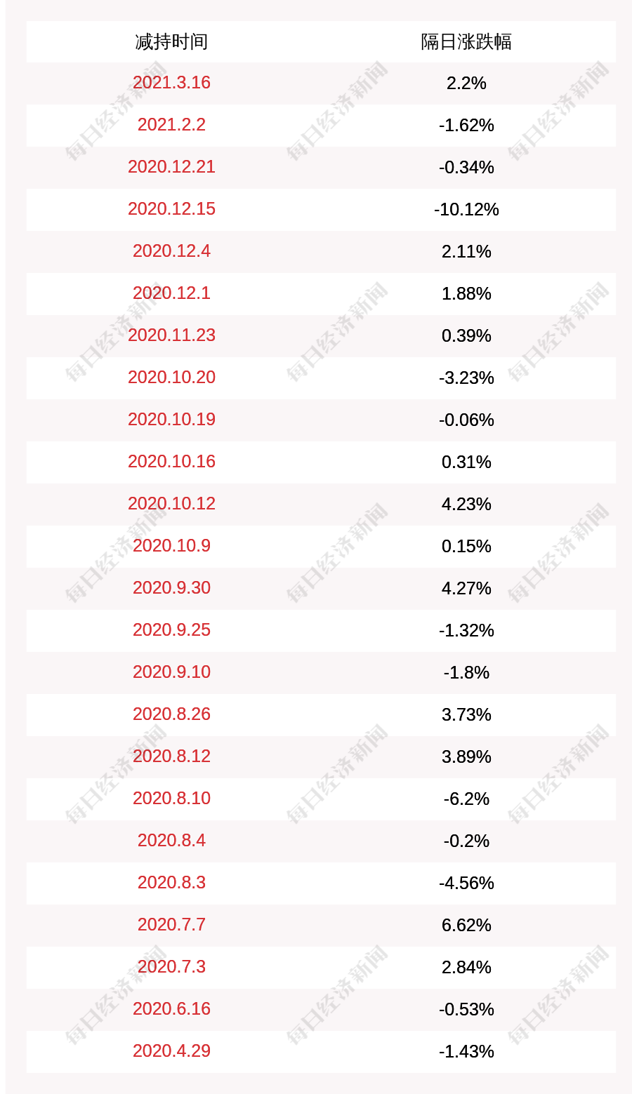 3. 中简科技上次发布减持公告是2021年03月16日,第二个交易日上涨2.2%,中简科技近一年共发布25次减持类公告。更多关键信息,请搜索“道达号”。
