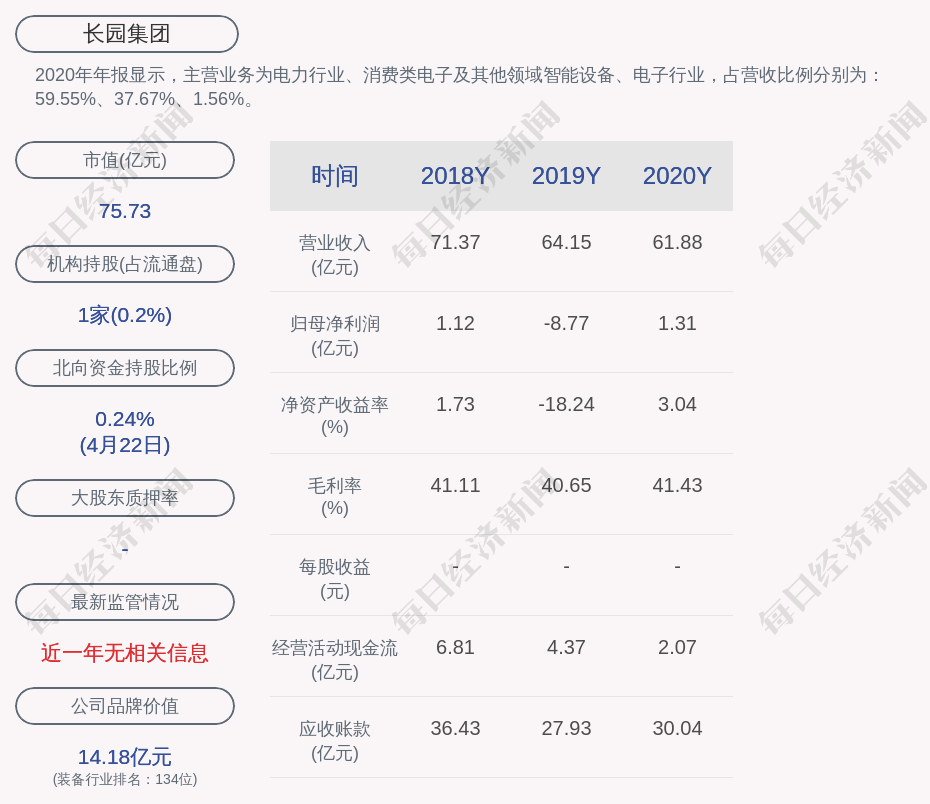 2020年年报显示,长园集团的主营业务为电力行业、消费类电子及其他领域智能设备、电子行业,占营收比例分别为:59.55%、37.67%、1.56%。