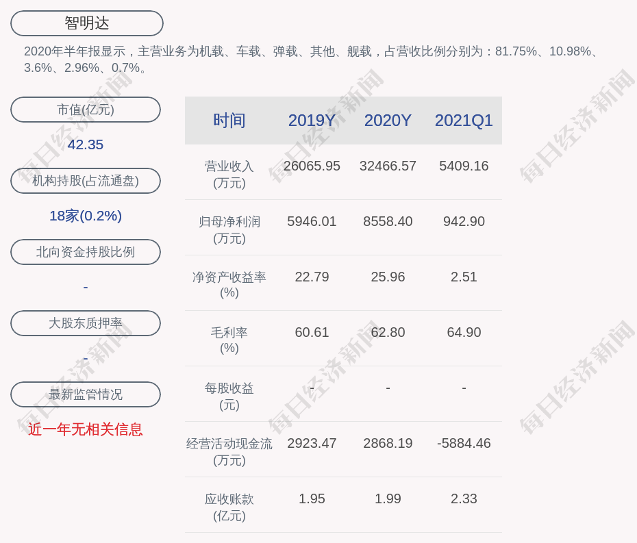 2020年半年报显示,智明达的主营业务为机载、车载、弹载、其他、舰载,占营收比例分别为:81.75%、10.98%、3.6%、2.96%、0.7%。