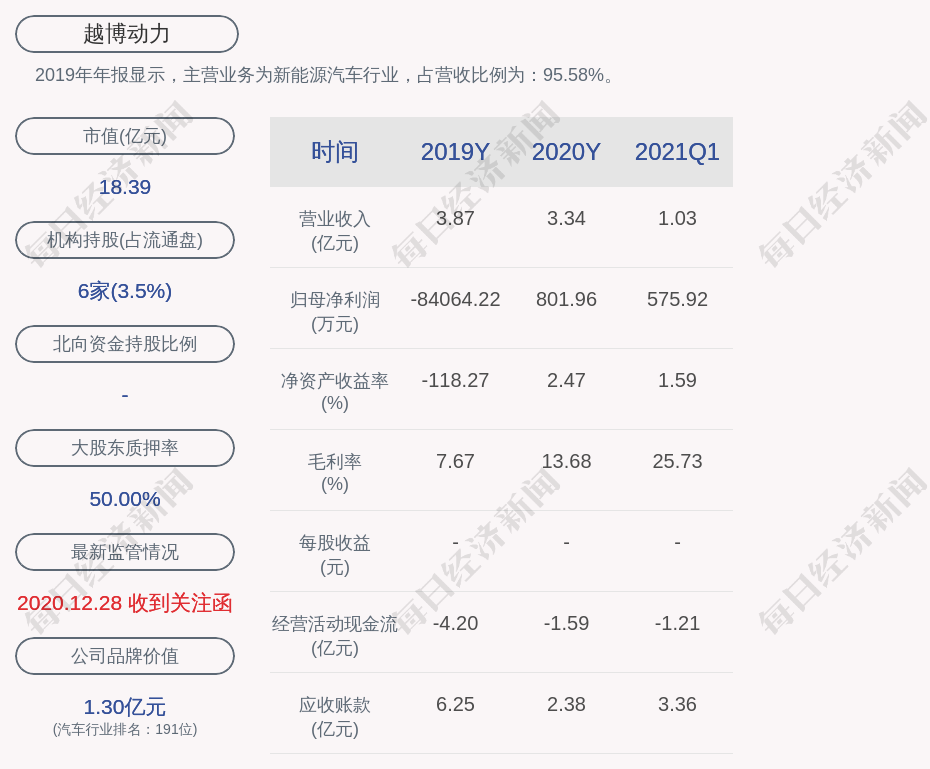 2019年年报显示,越博动力的主营业务为新能源汽车行业,占营收比例为:95.58%。