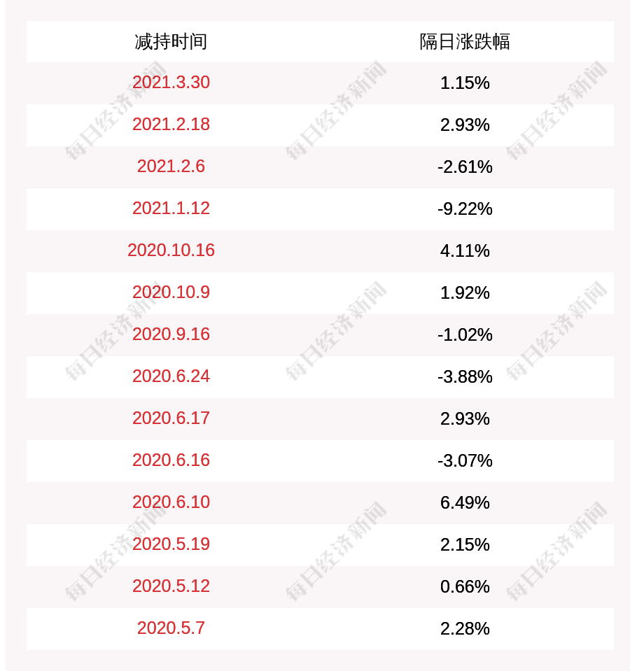 2. 和胜股份上次发布减持公告是2021年03月30日,第二个交易日上涨1.15%,和胜股份近一年共发布15次减持类公告。更多关键信息,请搜索“道达号”。