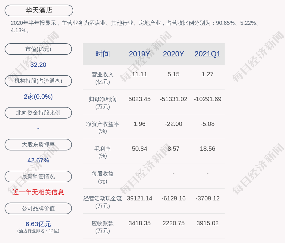 2020年半年报显示,华天酒店的主营业务为酒店业、其他行业、房地产业,占营收比例分别为:90.65%、5.22%、4.13%。