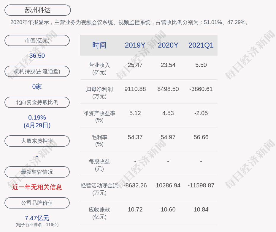 2020年年报显示,苏州科达的主营业务为视频会议系统、视频监控系统,占营收比例分别为:51.01%、47.29%。