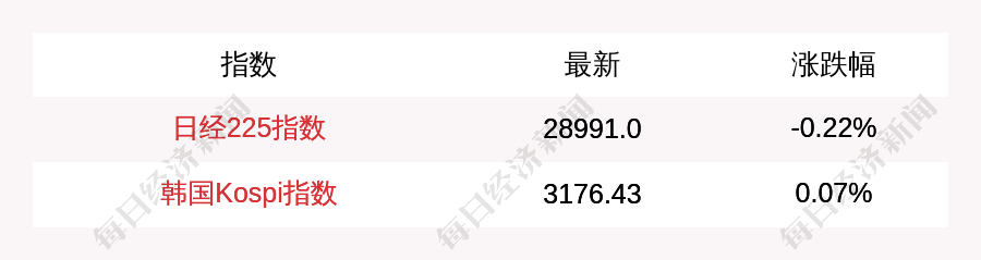 每经AI快讯:北京时间4月30日08:00,日经225指数开盘下跌62.97点,跌幅为0.22%,报28991.0点;韩国KOSPI指数开盘上涨2.36点,涨幅为0.07%,报3176.43点。