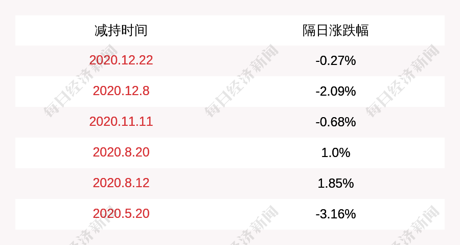 2. 红墙股份上次发布减持公告是2020年12月22日,第二个交易日下跌0.27%,红墙股份近一年共发布7次减持类公告。更多关键信息,请搜索“道达号”。