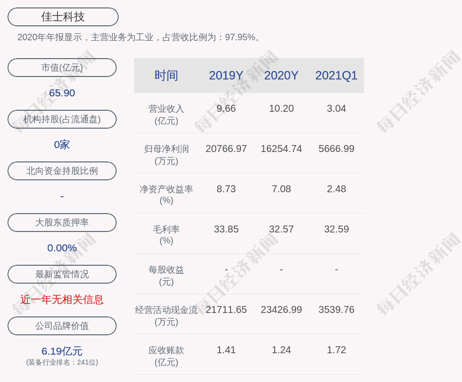 2020年年报显示,佳士科技的主营业务为工业,占营收比例为:97.95%。