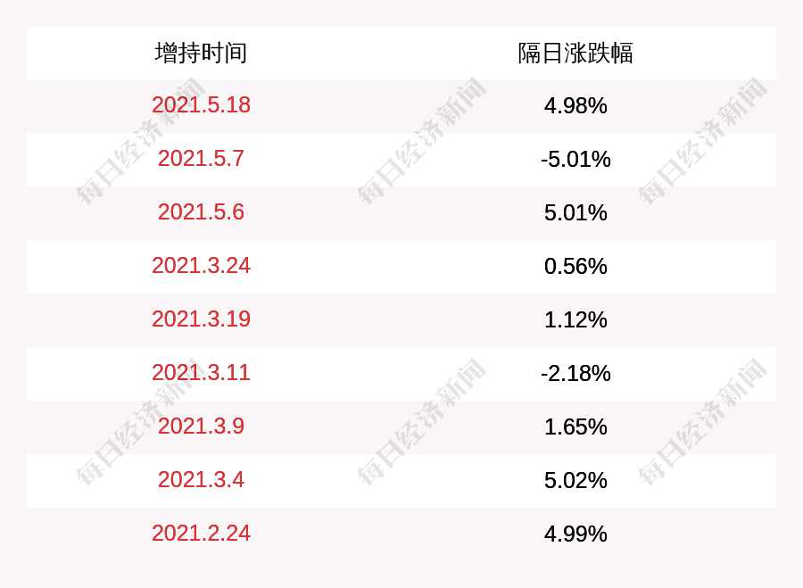2. ST岩石上次发布增持公告是2021年05月18日,第二个交易日上涨4.98%,ST岩石近一年共发布10次增持类公告。更多关键信息,请搜索“道达号”。