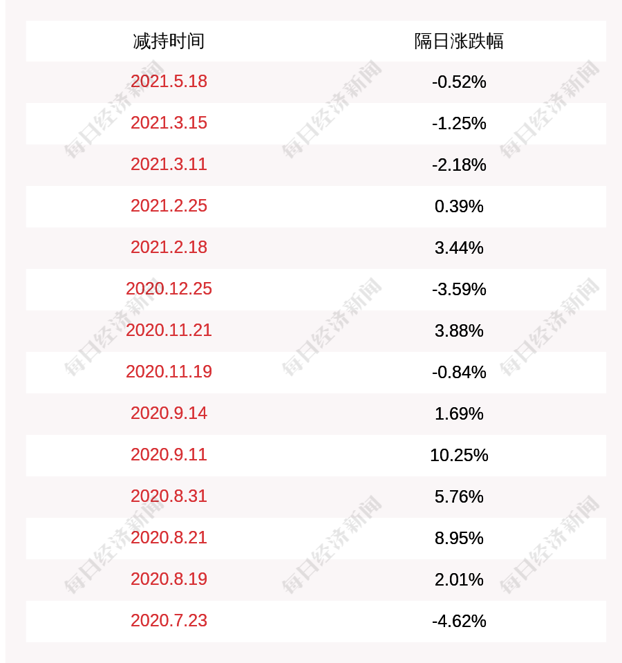 2. 安利股份上次发布减持公告是2021年05月18日,第二个交易日下跌0.52%,安利股份近一年共发布15次减持类公告。更多关键信息,请搜索“道达号”。