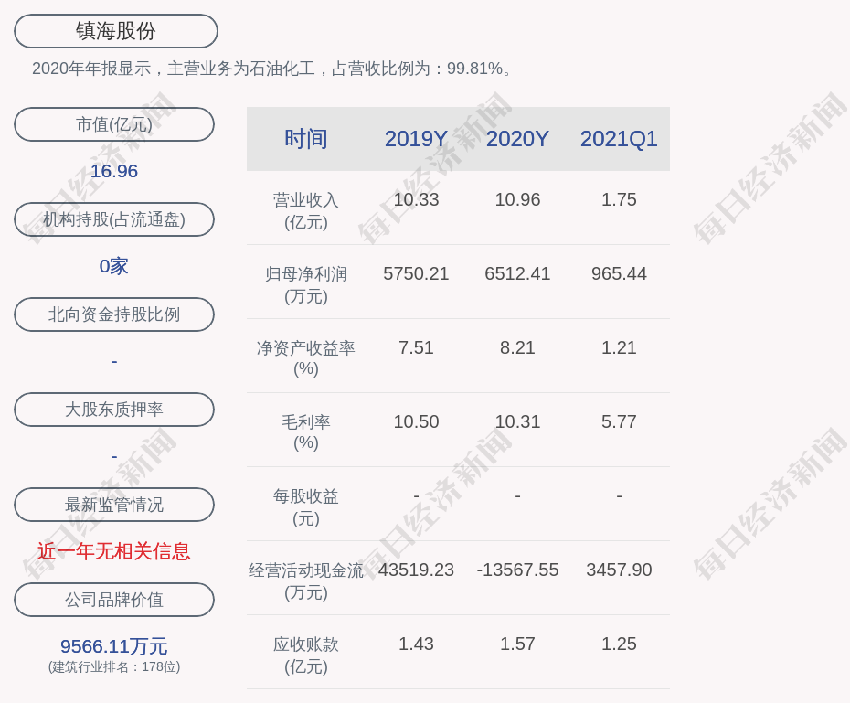 2020年年报显示,镇海股份的主营业务为石油化工。