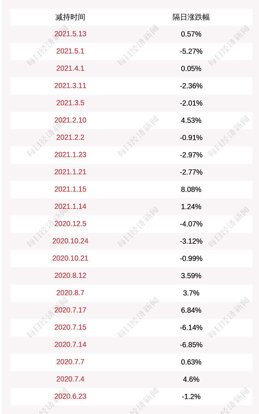 2. 世名科技上次发布减持公告是2021年05月13日,第二个交易日上涨0.57%,世名科技近一年共发布23次减持类公告。更多关键信息,请搜索“道达号”。