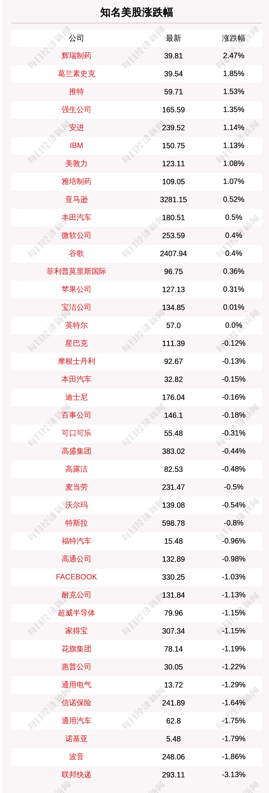 每经AI快讯:北京时间6月10日05:30,知名美股中辉瑞制药、葛兰素史克、推特、强生公司、安进涨幅居前,收盘分别上涨2.47%、1.85%、1.53%、1.35%、1.14%。联邦快递、波音、诺基亚、通用汽车、信诺保险跌幅居前,收盘分别下跌3.13%、1.86%、1.79%、1.75%、1.64%。