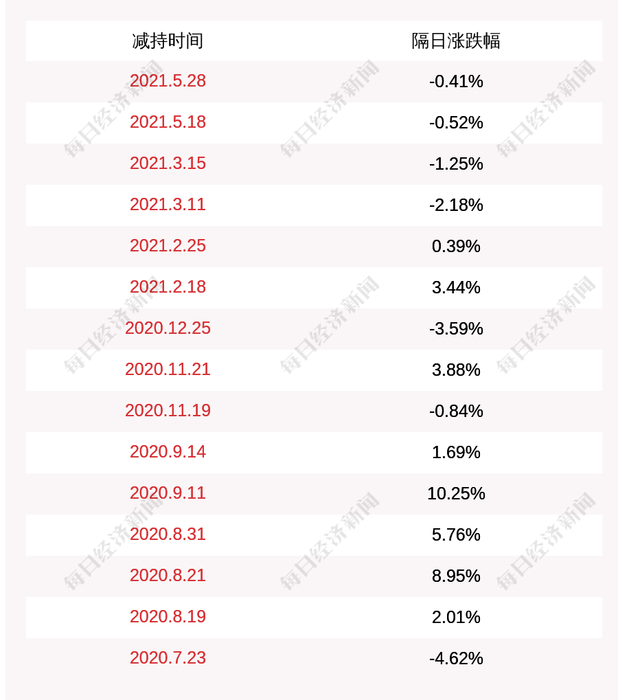 2. 安利股份上次发布减持公告是2021年05月28日,第二个交易日下跌0.41%,安利股份近一年共发布16次减持类公告。更多关键信息,请搜索“道达号”。
