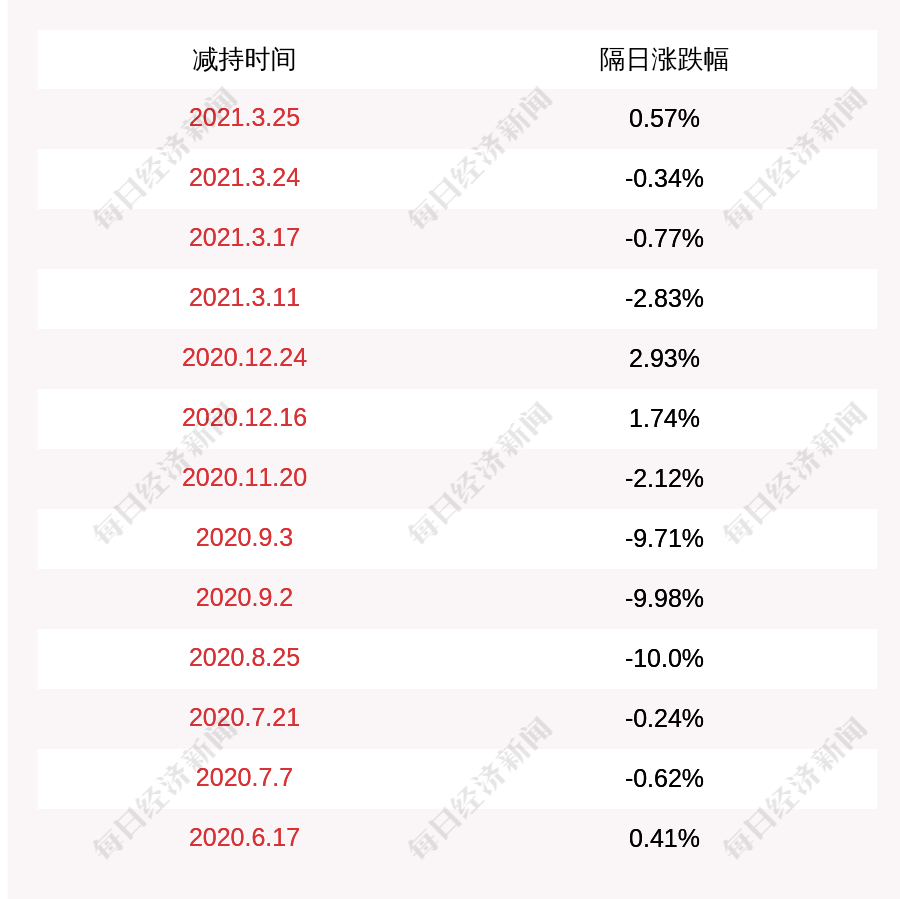 3. 渤海轮渡上次发布减持公告是2021年03月25日,第二个交易日上涨0.57%,渤海轮渡近一年共发布14次减持类公告。更多关键信息,请搜索“道达号”。
