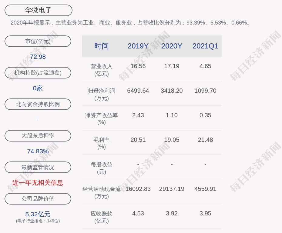 2020年年报显示,华微电子的主营业务为工业、商业、服务业。