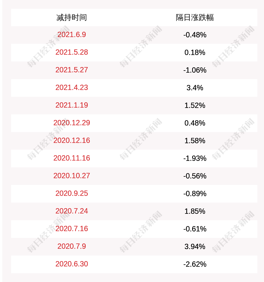 3. 万孚生物上次发布减持公告是2021年06月09日,第二个交易日下跌0.48%,万孚生物近一年共发布15次减持类公告。更多关键信息,请搜索“道达号”。