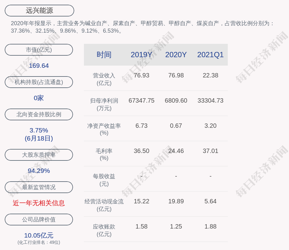 2020年年报显示,远兴能源的主营业务为碱业自产、尿素自产、甲醇贸易、甲醇自产、煤炭自产,占营收比例分别为:37.36%、32.15%、9.86%、9.12%、6.53%。