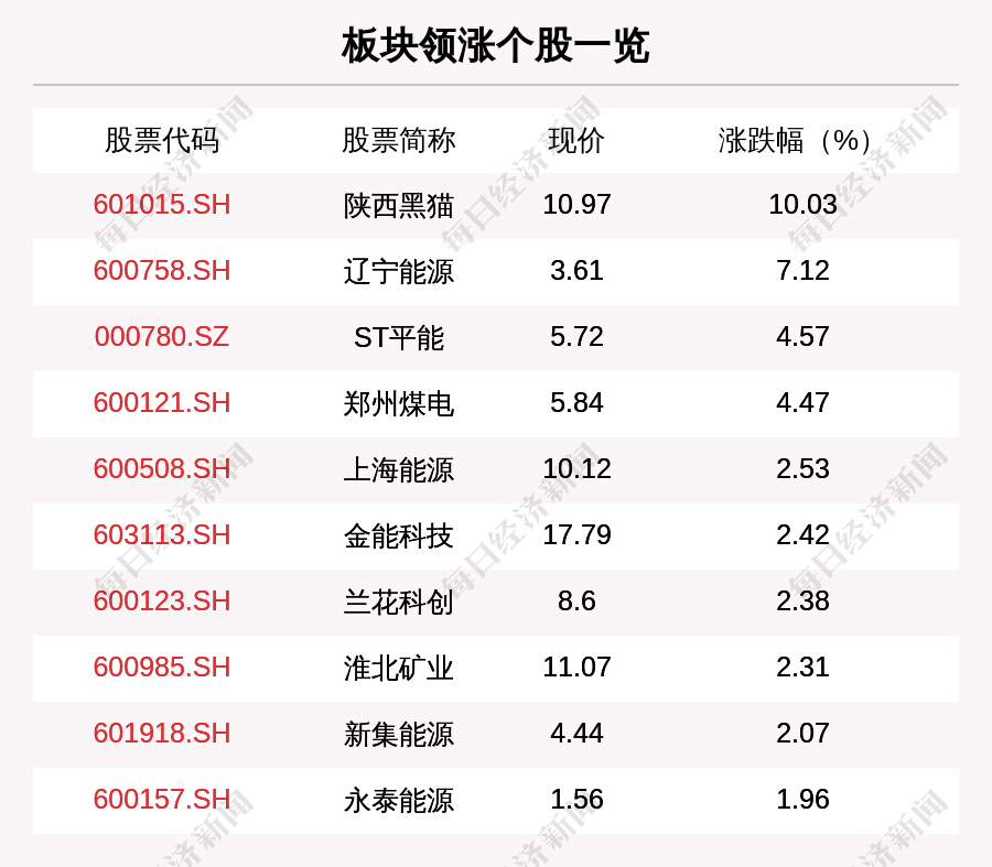 每经AI快讯,煤炭板块走强,板块内32只上涨,6只下跌,陕西黑猫、辽宁能源、ST平能分别涨10.03%、7.12%、4.57%。