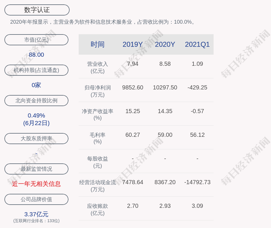 2. 近30日内无机构对数字认证进行调研;