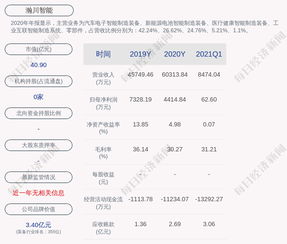 2020年年报显示,瀚川智能的主营业务为汽车电子智能制造装备、新能源电池智能制造装备、医疗健康智能制造装备、工业互联智能制造系统、零部件,占营收比例分别为:42.24%、26.62%、24.76%、5.21%、1.1%。