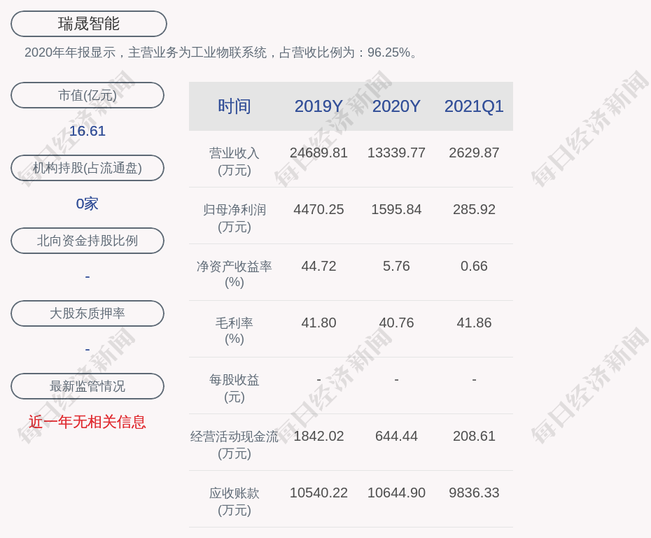 2020年年报显示,瑞晟智能的主营业务为工业物联系统,占营收比例为:96.25%。