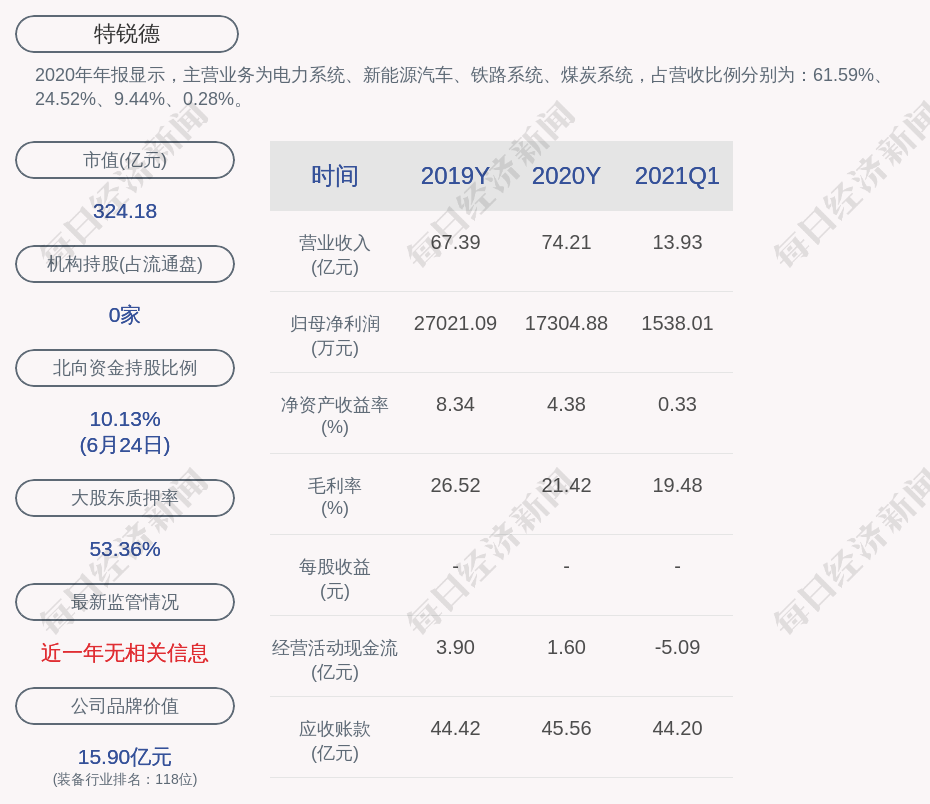 2020年年报显示,特锐德的主营业务为电力系统、新能源汽车、铁路系统、煤炭系统。