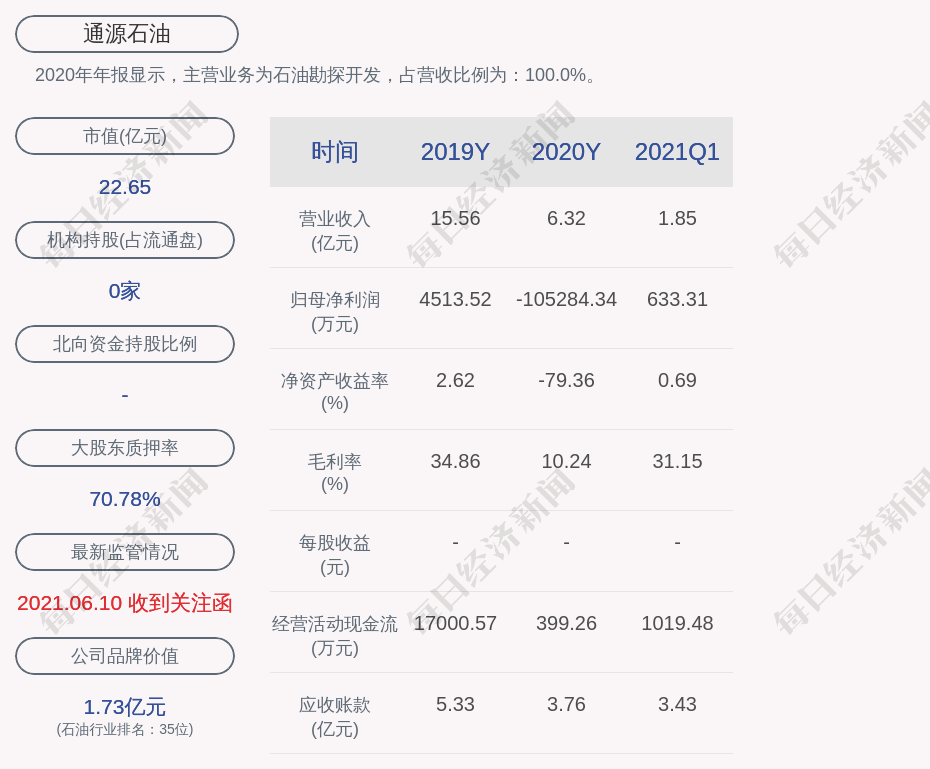 2020年年报显示,通源石油的主营业务为石油勘探开发。
