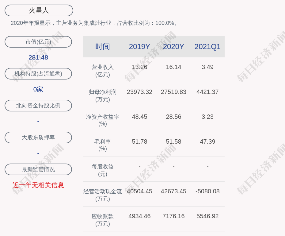 2020年年报显示,火星人的主营业务为集成灶行业。