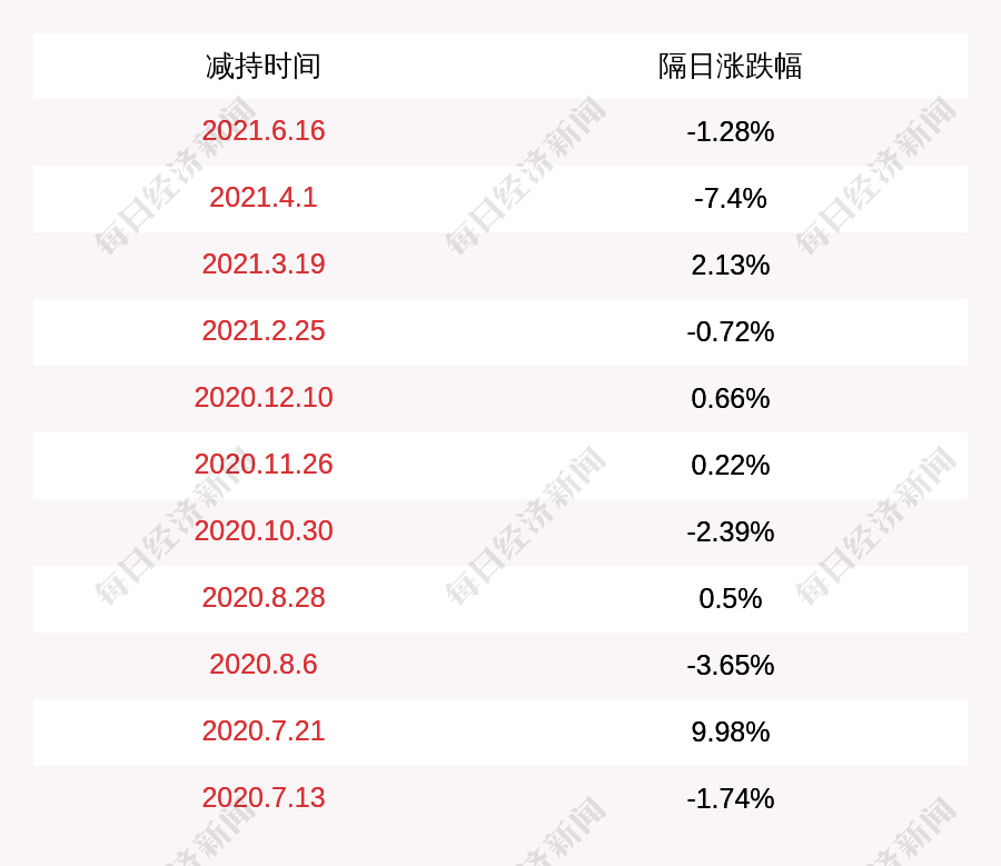 2. 贝肯能源上次发布减持公告是2021年06月16日,第二个交易日下跌1.28%,贝肯能源近一年共发布12次减持类公告。更多关键信息,请搜索“道达号”。