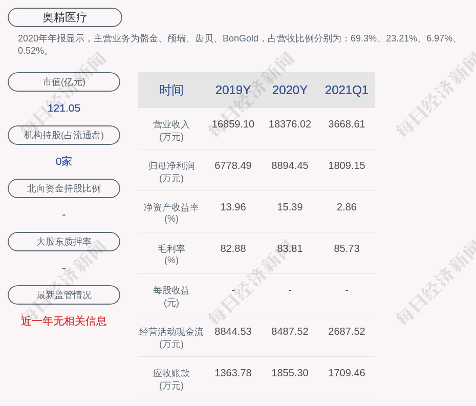 2. 根据各大券商对奥精医疗净利润的预测,奥精医疗2021年半年度预测净利润平均值为6400万元。奥精医疗去年同期净利润为1002.3万元。更多关键信息,请搜索“道达号”。