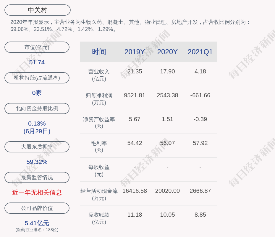 2020年年报显示,中关村的主营业务为生物医药、混凝土、物业管理、房地产开发等。