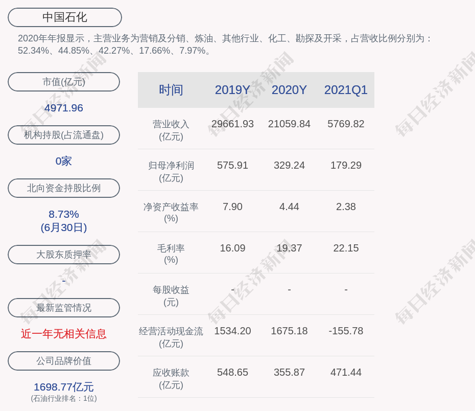 1. 中国石化近30日内北向资金持股量增加4810.60万股,占流通股比例增加0.06%;