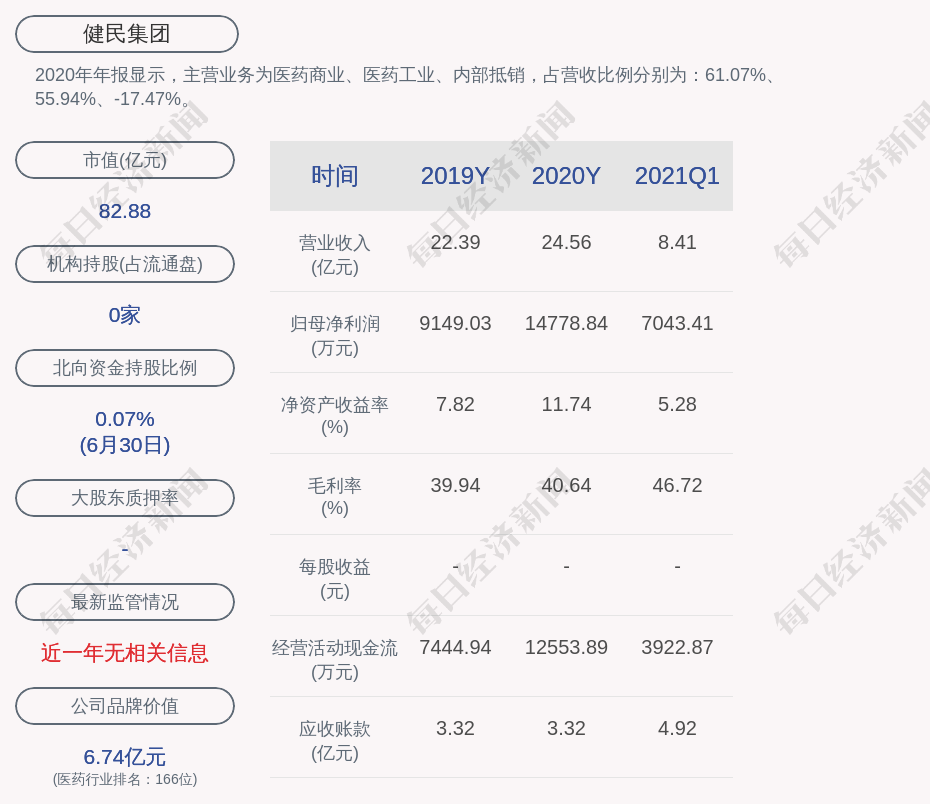 2020年年报显示,健民集团的主营业务为医药商业、医药工业等。