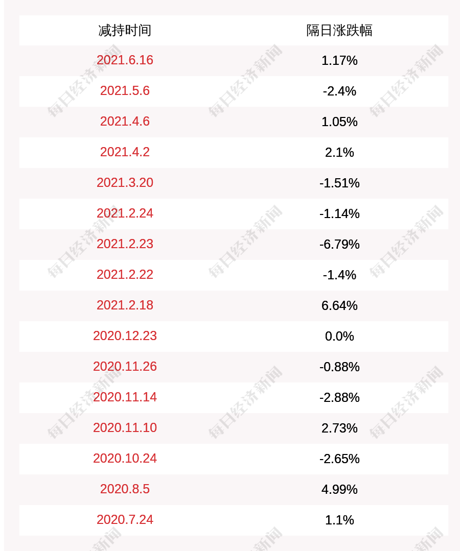 2. 嘉元科技上次发布减持公告是2021年06月16日,第二个交易日上涨1.17%,嘉元科技近一年共发布17次减持类公告。更多关键信息,请搜索“道达号”。