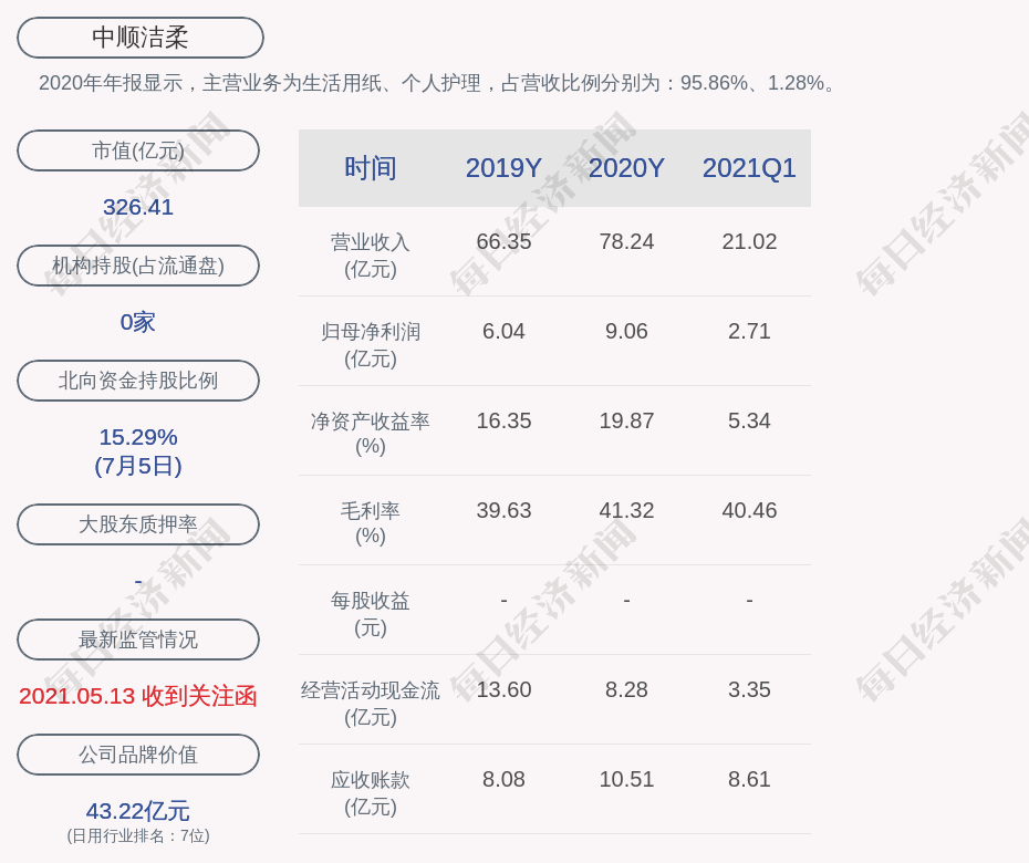 2020年年报显示,中顺洁柔的主营业务为生活用纸、个人护理,占营收比例分别为:95.86%、1.28%。