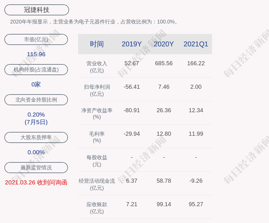 2020年年报显示,冠捷科技的主营业务为电子元器件行业,占营收比例为:100.0%。
