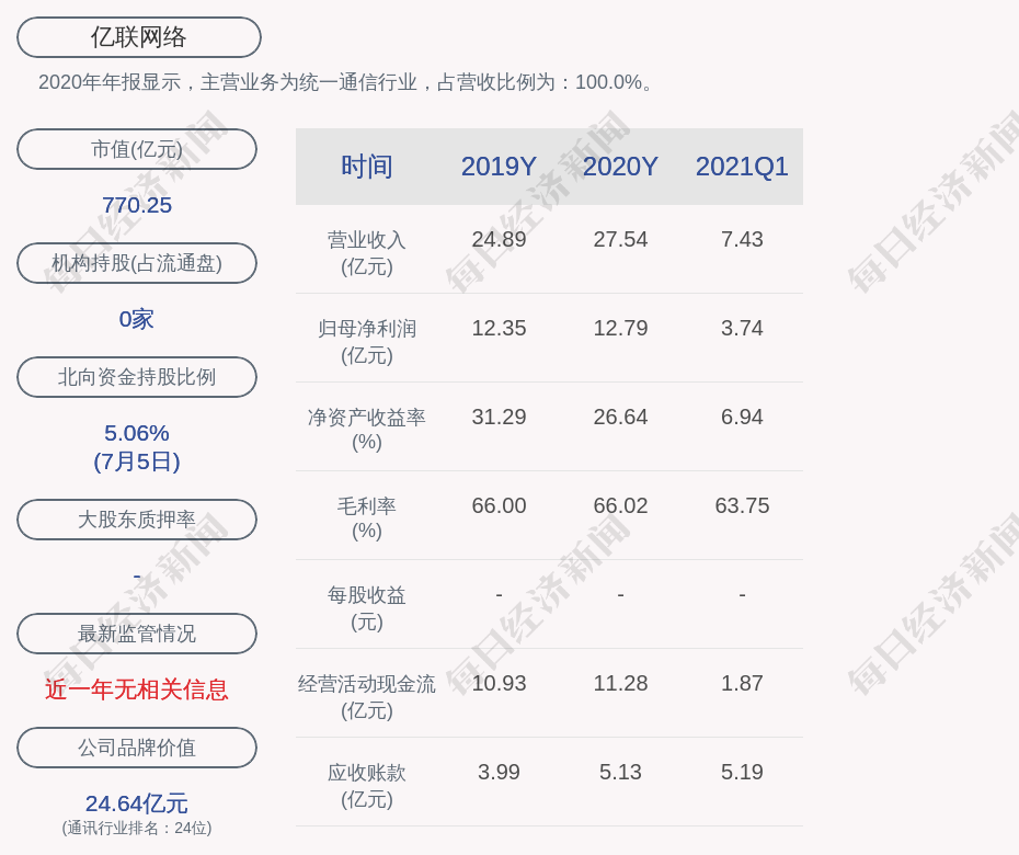 2020年年报显示,亿联网络的主营业务为统一通信行业,占营收比例为:100.0%。