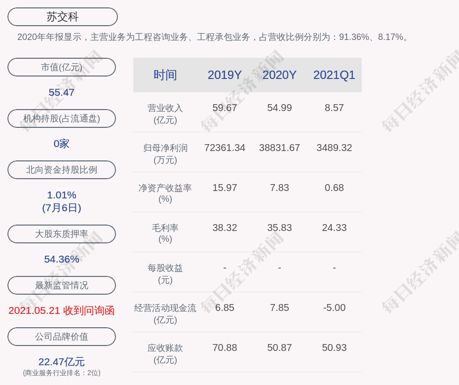 2020年年报显示,苏交科的主营业务为工程咨询业务、工程承包业务。