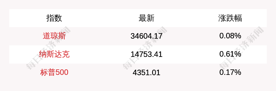 每经AI快讯:北京时间7月7日21:30,道琼斯开盘上涨26.8点,涨幅为0.08%,报34604.17点;纳斯达克开盘上涨89.77点,涨幅为0.61%,报14753.41点;标普500开盘上涨7.47点,涨幅为0.17%,报4351.01点;富时中国A50指数期货上涨90.0点,涨幅为0.53%,报17089.0点。