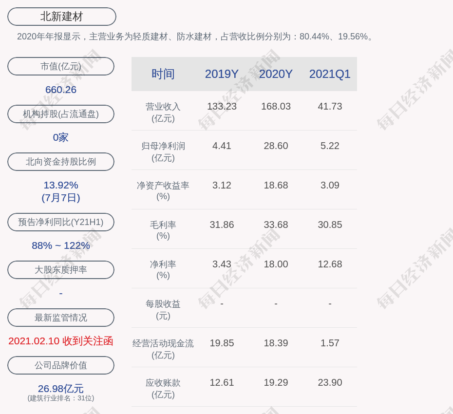 2. 近30日内共有1批机构对北新建材调研,合计调研的机构家数为1家;