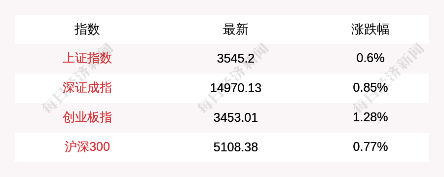 每经AI快讯:北京时间7月12日9:30,上证指数开盘上涨21.11点,涨幅为0.6%,报3545.2点;深证成指开盘上涨125.77点,涨幅为0.85%,报14970.13点;创业板指开盘上涨43.7点,涨幅为1.28%,报3453.01点;沪深300开盘上涨38.94点,涨幅为0.77%,报5108.38点。